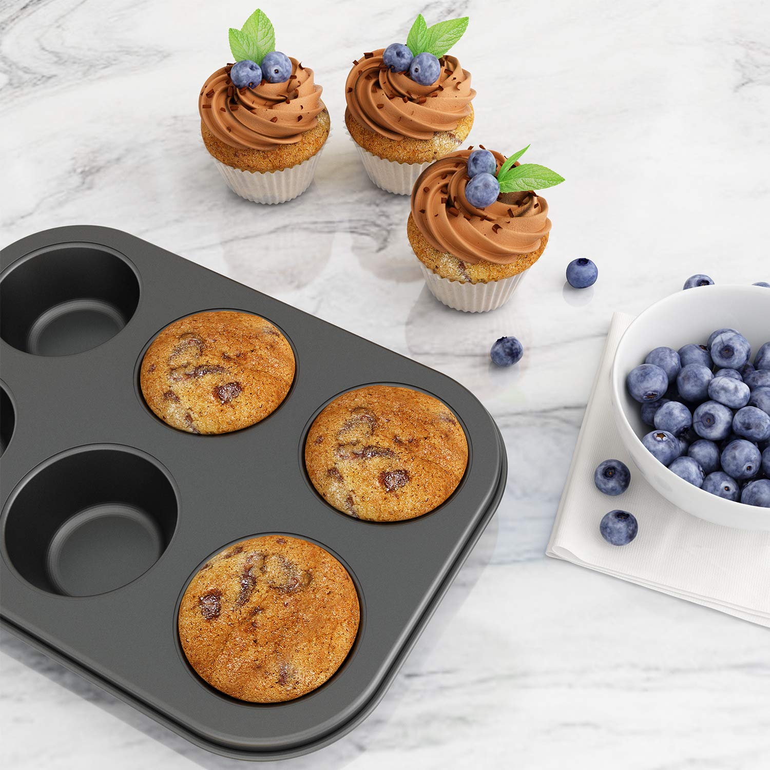 - PREMIUM QUALITY, DURABLE AND LONG LASTING: Non-Stick Giant Muffin Pan is crafted from heavy-weight carbon steel for superior heat conduction and even baking.